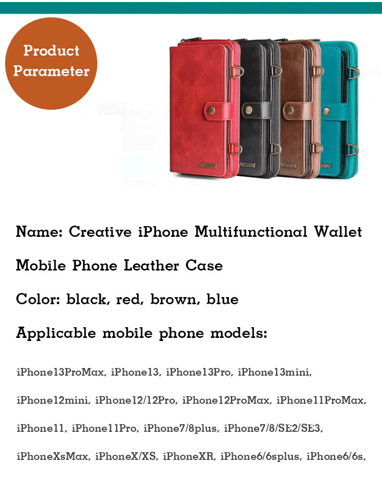 Upgraded wallet all-in-one iPhone case Use high-quality materials Small, portable and powerful Detachable design Zipper pocket can be used alone Practicality (strong)